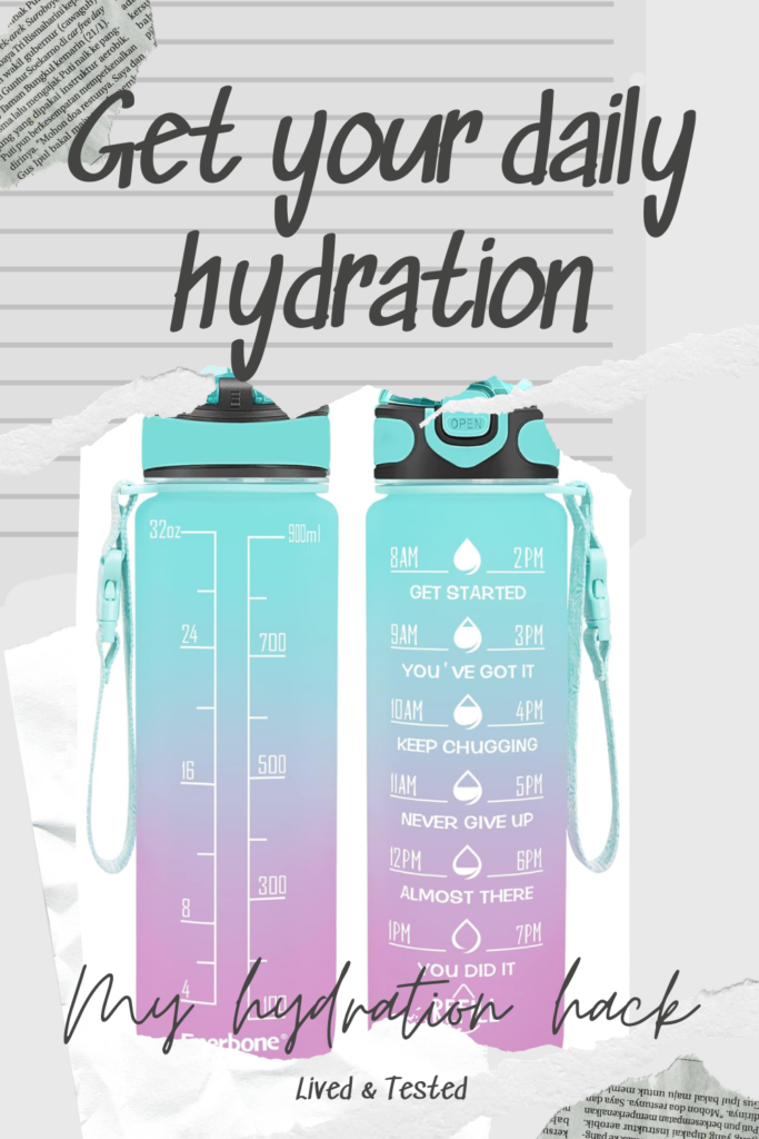 I highly recommend this water bottle. It’s a very inexpensive way to stay hydrated which will, in turn, help you stay healthy and feeling good!